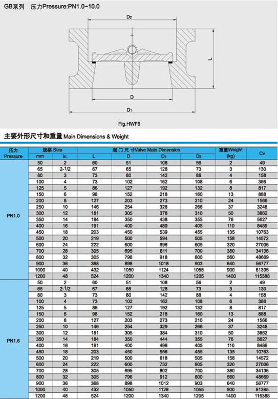 公稱通徑:DN50、DN65、DN80、DN100、DN125、DN150、DN200、DN250、DN300、DN350、DN400、DN450、DN500、DN600、DN650、DN700、DN750、DN800、DN900、DN1000、DN1050、DN1200。